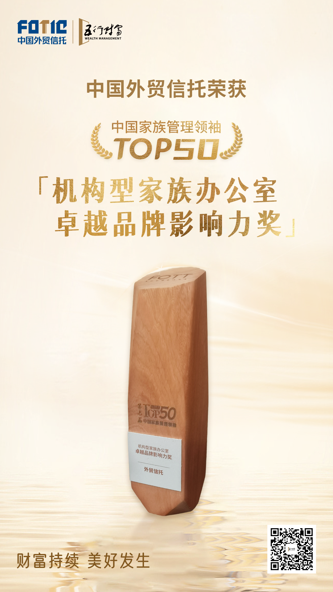 近日,在第七屆中國家族管理領袖TOP50論壇上,中國外貿信托榮獲中國家族管理領袖TOP50“機構型家族辦公室-卓越品牌影響力獎”。